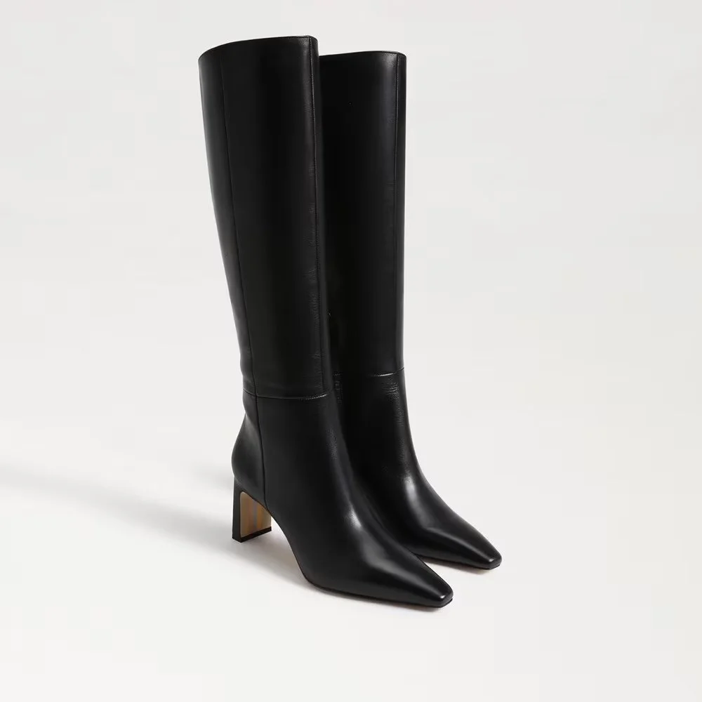 7) Knee-High Black Heel Boots
